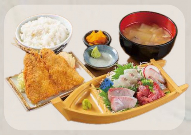 漁港すぐそば。獲れたての地魚を使った刺身や天ぷら、小鉢をつまみに一杯…なんて贅沢も昼間からOK。夜も同じメニューです。秘伝の唐揚げ定食など、白ごはん&あら汁おかわり自由の満腹セットも人気!