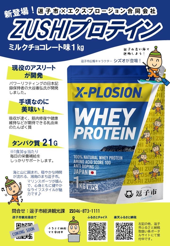 新登場!逗子市×X-PLOSIONコラボ【ZUSHIプロテイン】ミルクチョコレート味1kg!