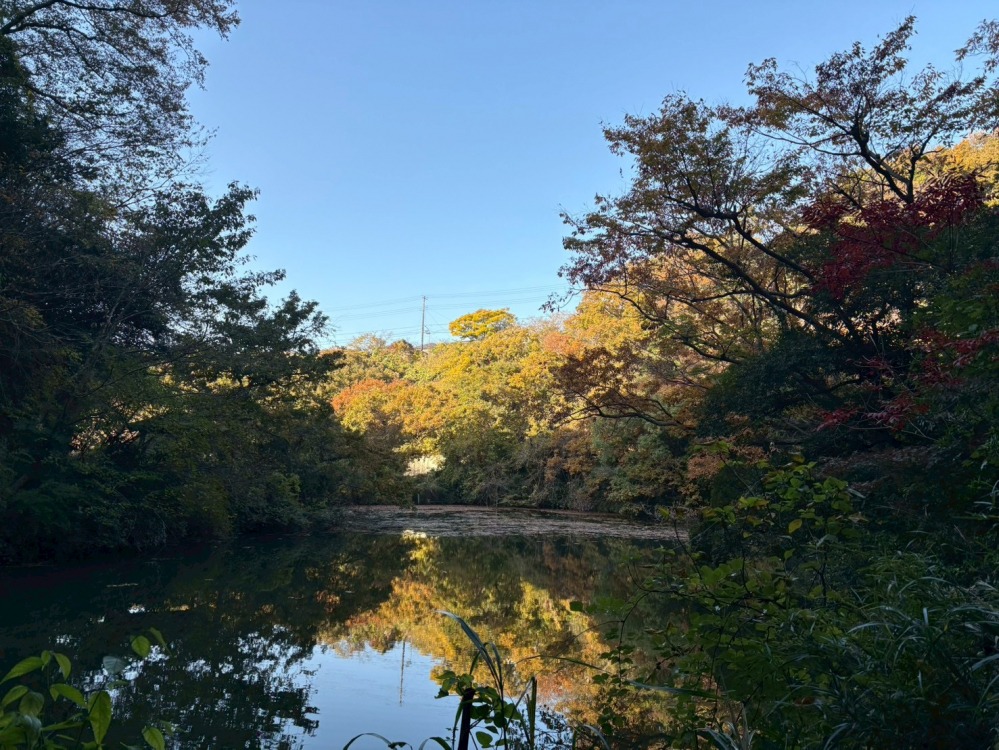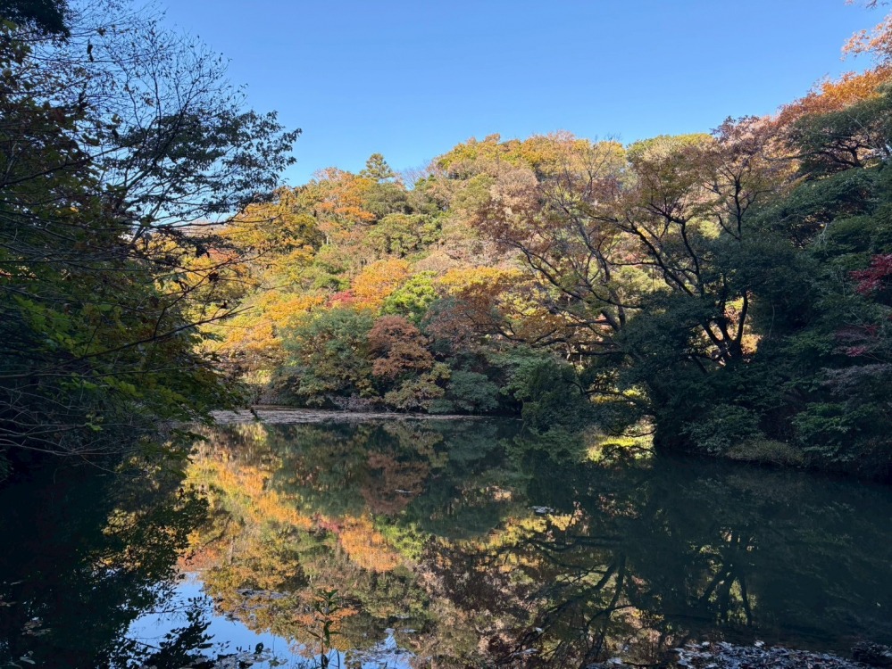 水面に映る秋の色彩... 久木大池の静かな時間