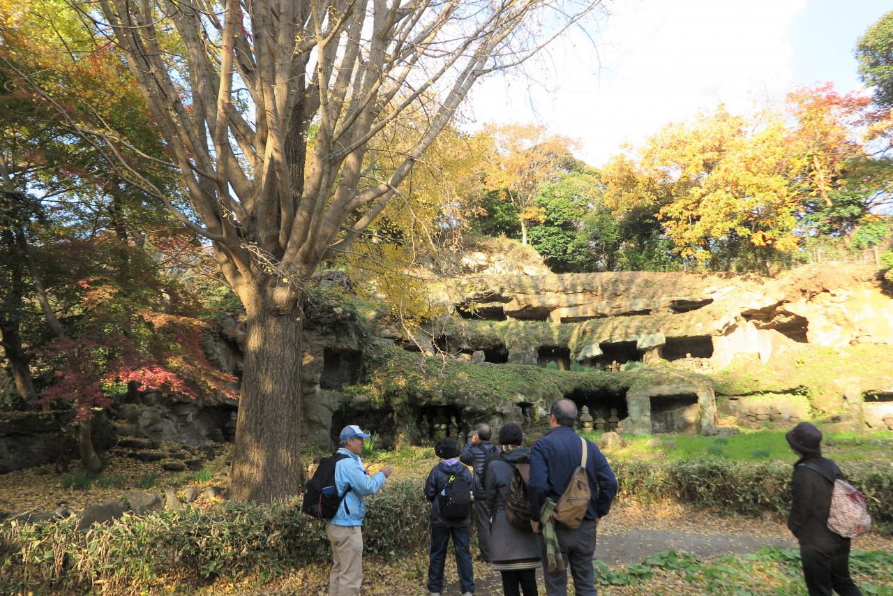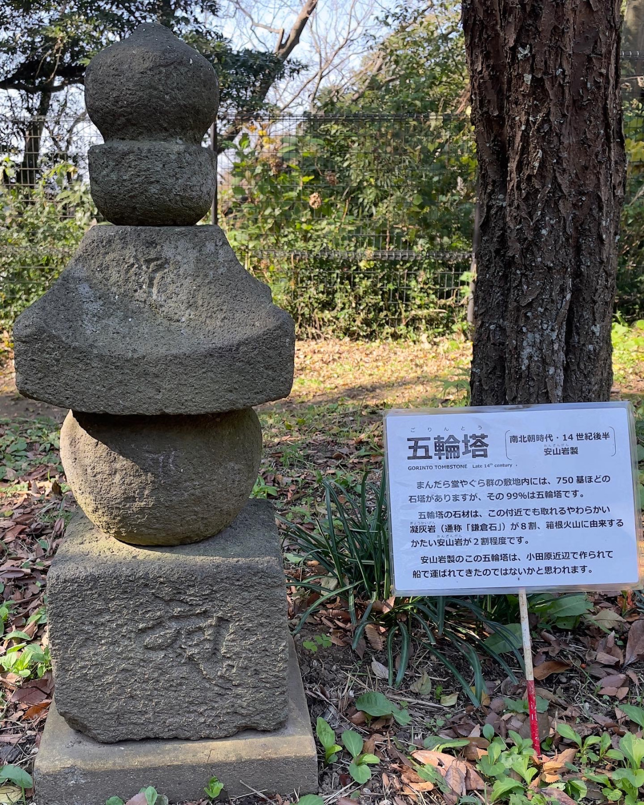 「まんだらどう」の名が確認できる最も古い文献は、文禄三年(1594年)の検地帳です。しかし、そこには畠の地名として記されているのみで、まんだら堂がどんな建物だったのか、いつまで残っていたのかなど、詳しいことは全くわかっていません。まんだら堂やぐら群は、一つひとつは2m四方程度と小規模で構造も単純なものが多いですが、150穴以上の存在が確認されている有数のやぐら群で、これだけまとまったやぐらを良い状態で見ることのできる遺跡は鎌倉市内にも少なく、たいへん貴重です。やぐらの中に並ぶ五輪塔は、後の時代に動かされているものが多いので、中世の姿そのままとは言えませんが、供養するために建てられたものです。祀られたのは、武士や僧侶が多かったと考えられていますが、経済力を蓄えた商工業関係者なども含まれていたでしょう。