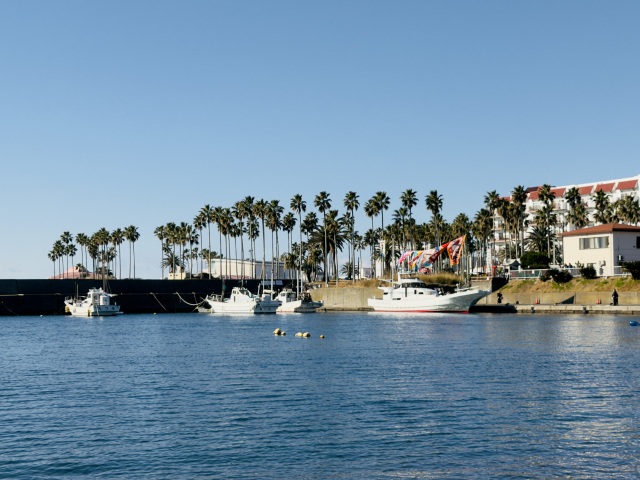 青空と、漁港と、海と、漁船、そして大漁旗の風景に、わくわく♬