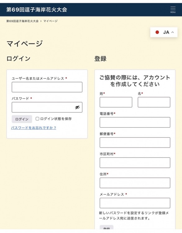 ※逗子海岸花火大会オンライン申込み受付サイト 新規登録