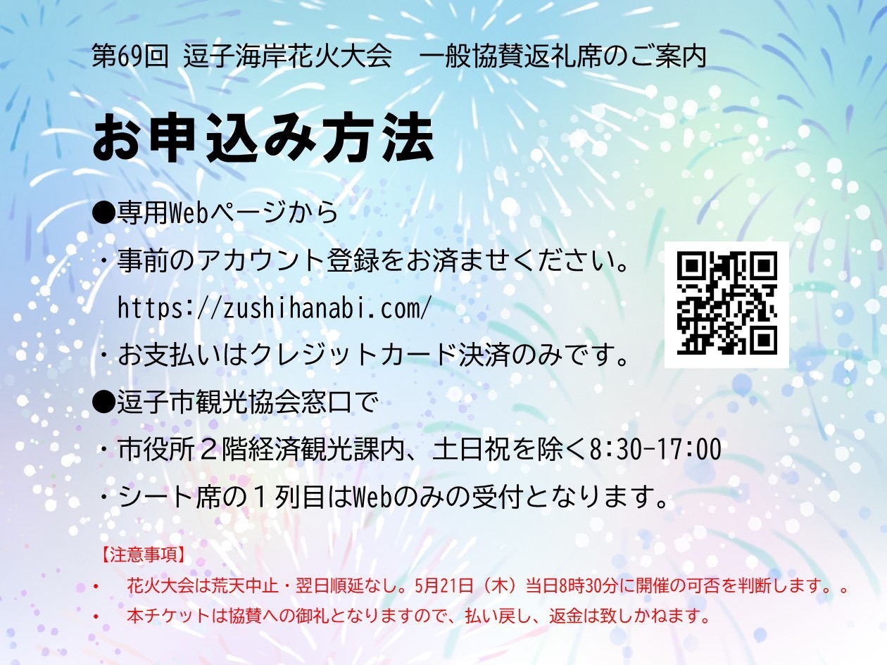 このページを見ている人は、こんなページも見ています 第69回逗子海岸花火大会ふるさと納税返礼席 more ※逗子海岸花火大会オンライン申込み受付サイト 新規登録 more 4.事業者協賛 more 三脚についてお知らせ more 料理屋 食彩堂 more 逗子海岸 more 逗子オリジナルポストカード more 逗子旅カレンダー2026 more 5.メッセージ花火 more