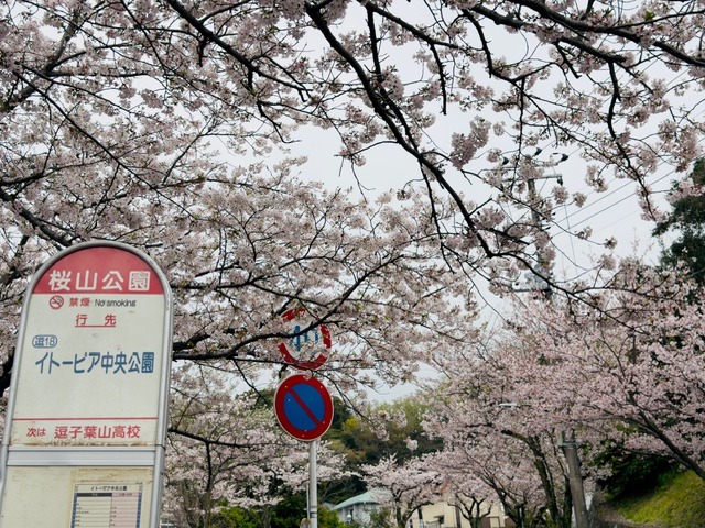 「桜山中央公園」は、JR横須賀線の「東逗子」駅から歩いて15分ほどの距離にあります。園内にはアスレチック遊具や滑り台などがあり、公園までの坂道には植樹された桜並木が続き、春になると見事な桜のプロムナードが完成します。公園内も広場スペースが大きく取られているので景色がよく、近隣では有数の花見スポットとして、毎年多くの人々でにぎわう公園です。