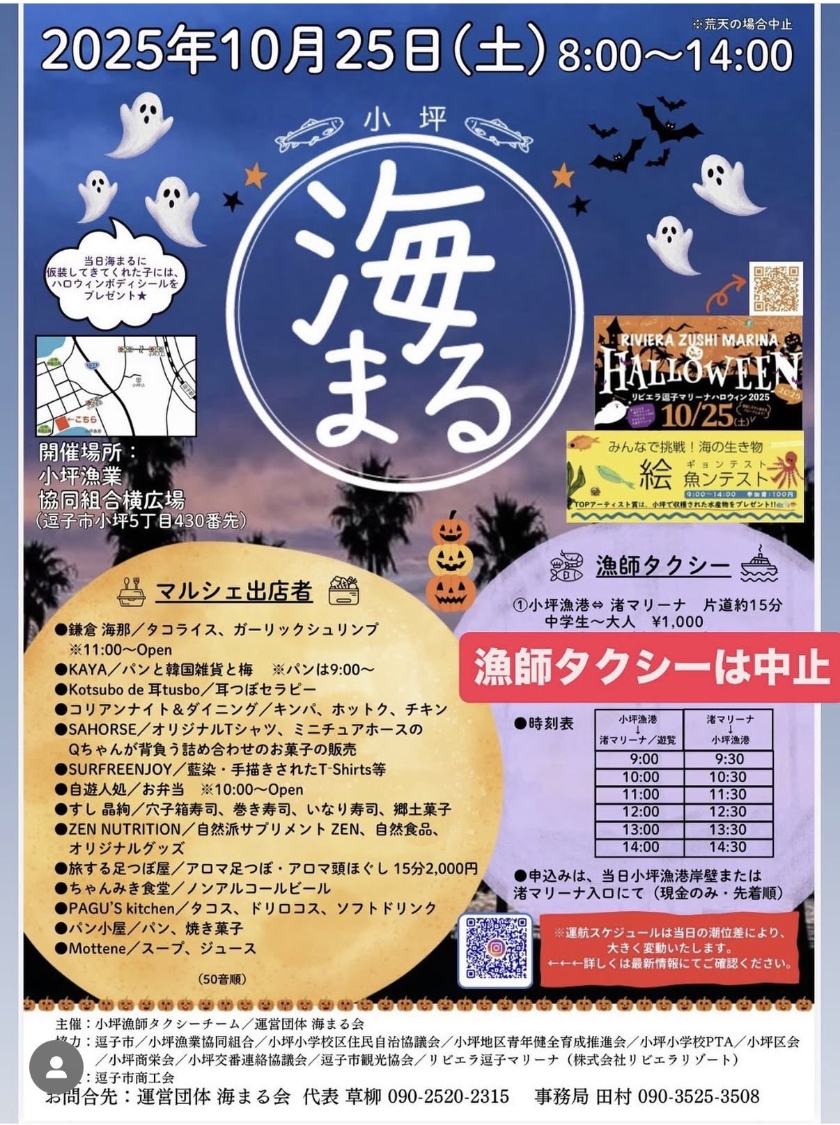 明日10月25日の「漁師タクシー」は雨天のため中止になりました。