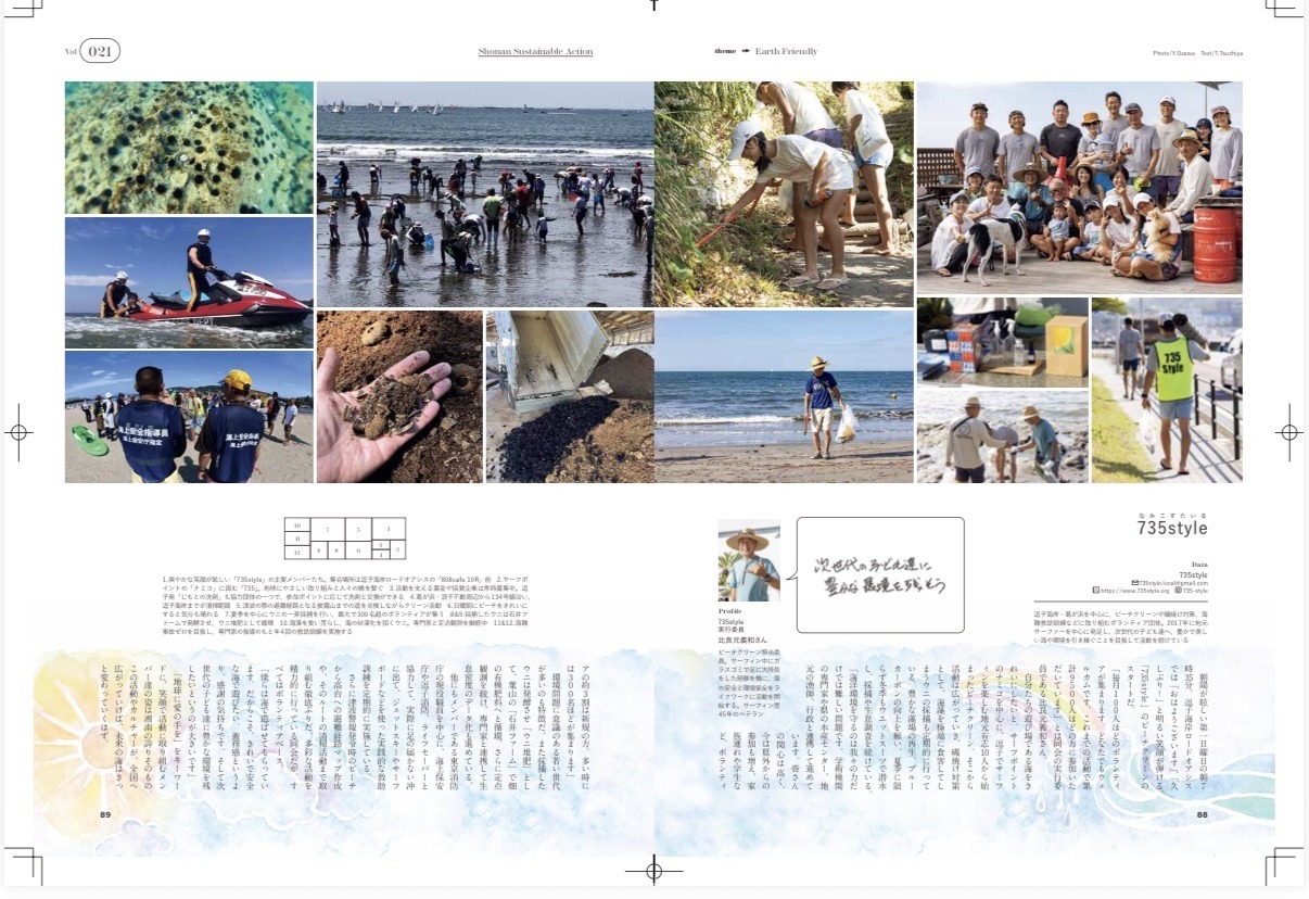 海から山へ、山から川へ、川から海へと水の循環を考え、次世代の子ども 達キレイな水を残せるよう、逗子 葛が浜から美化活動、磯焼け対策、海難救助訓練等の海洋環境整備や防災関連を行っています。